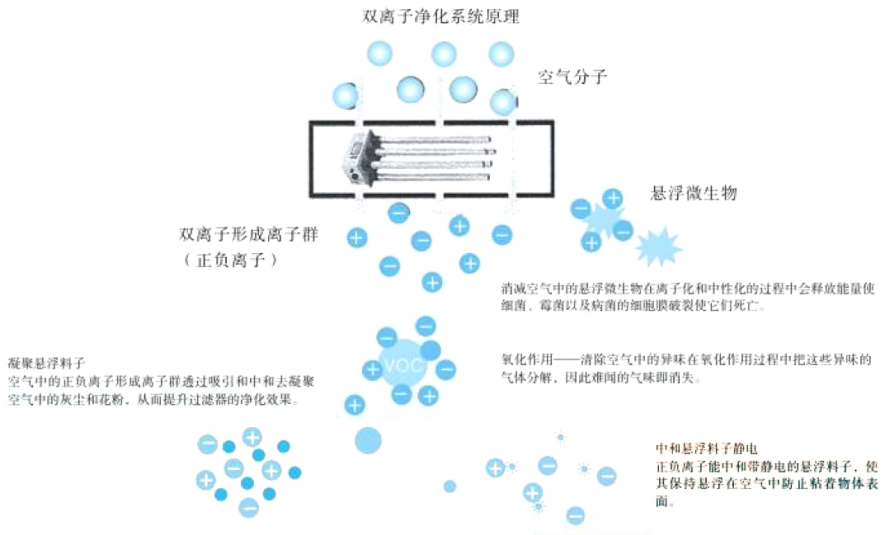 高能離子還可以與室內(nèi)靜電、異味等相互發(fā)生作用,有效地破壞空氣中細(xì)菌生存的環(huán)境,降低細(xì)菌濃度,并將其完全消除。